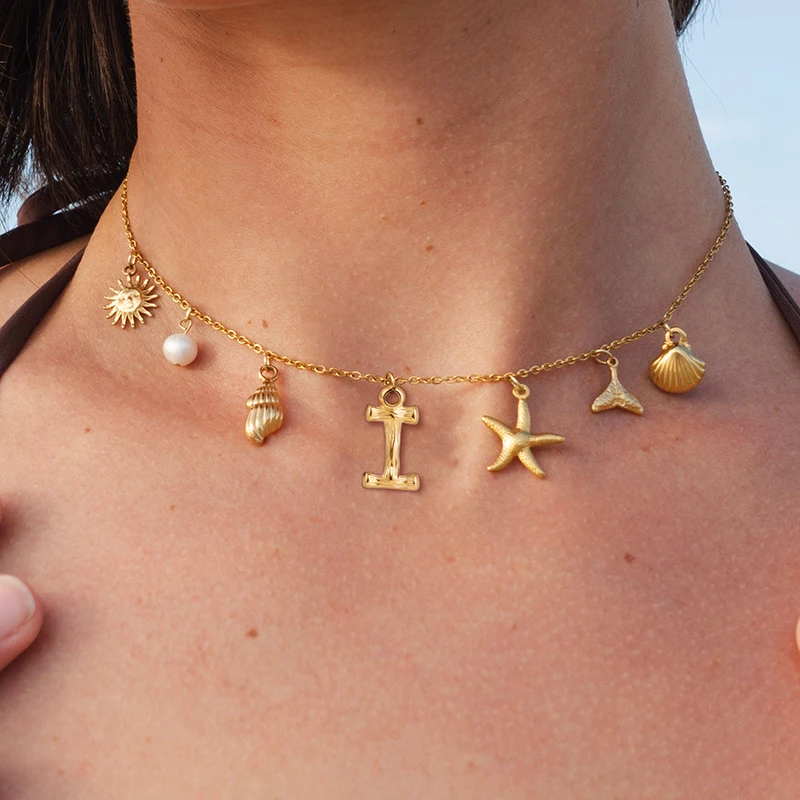 Boho A-Z Initial Letter Pendant Necklace Gold Color Beach Shell Starfish Pearl Necklace Women's Charm Jewelry Party Gift