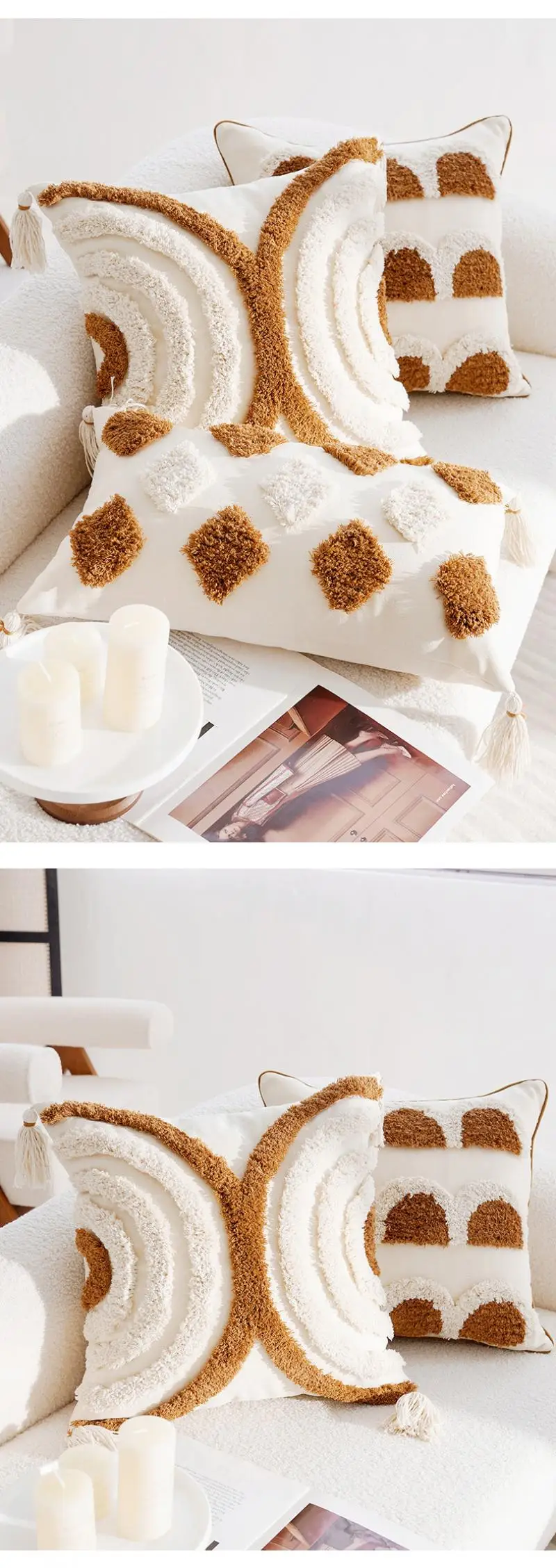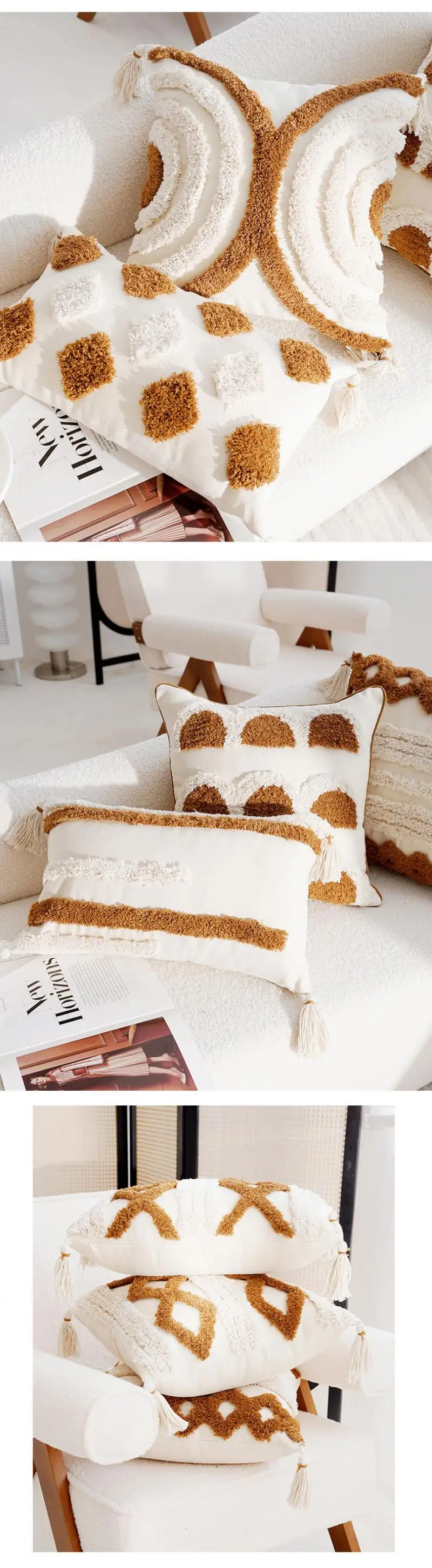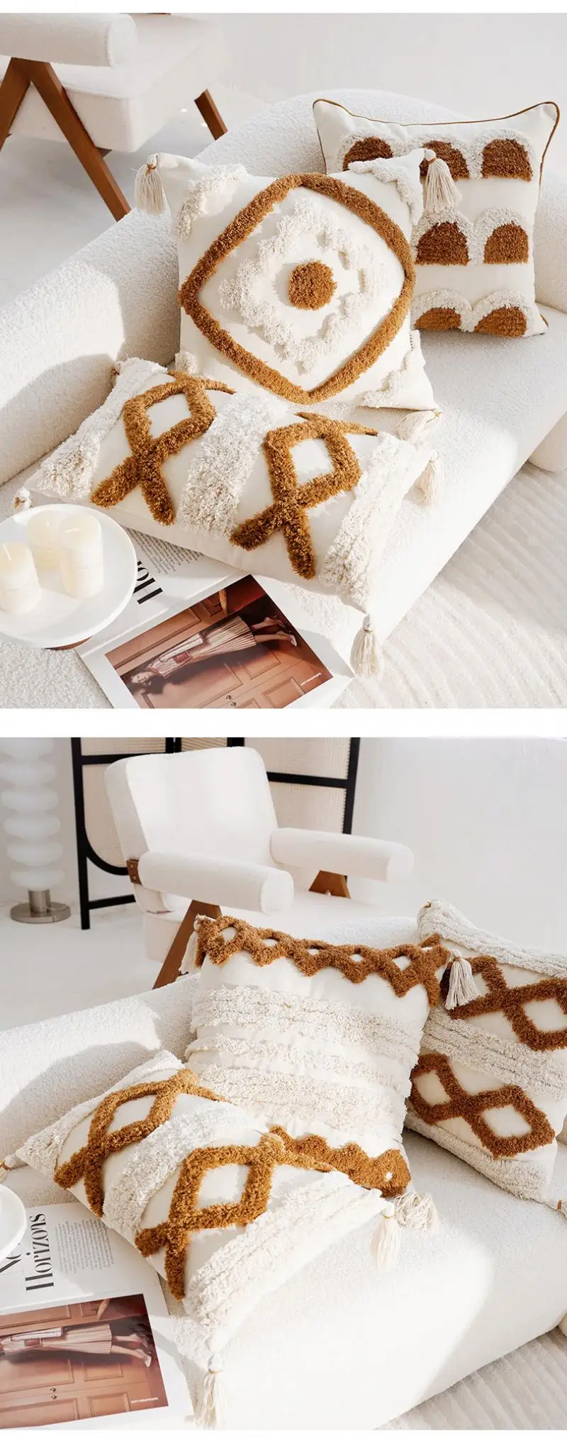 Boho Cushion Cover 45X45cm Moroccan Beige Brown Decorative Pillows for Sofa Jacquard Embroidery Pillowcase Home Supplies