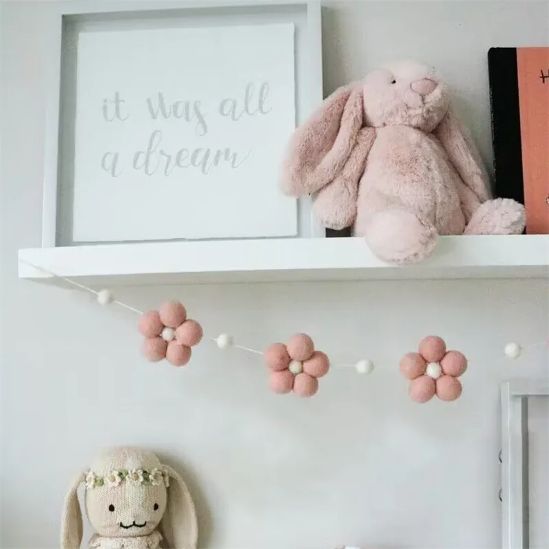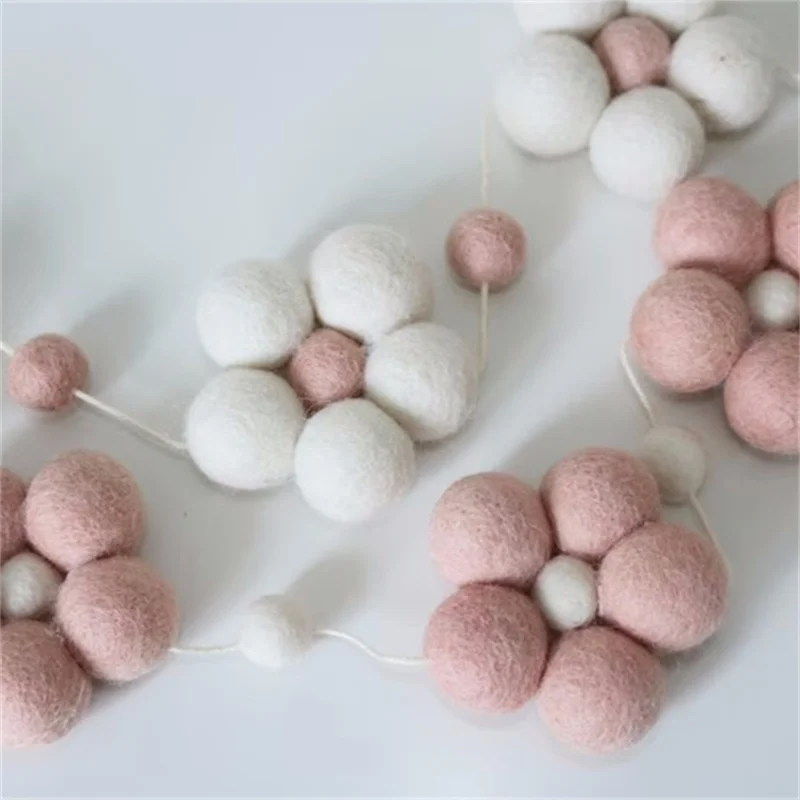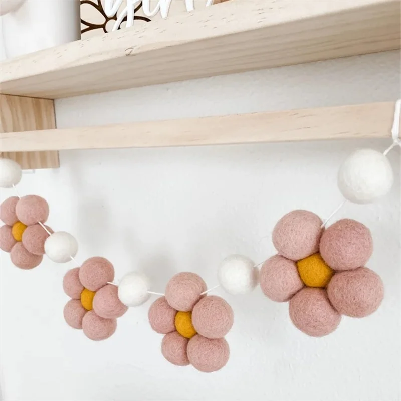 Boho Handmade Wool Felt Daisy Flower Garlands Kids Room Wall Haninging Decoration Pennant Baby Shower Party Banner Photo Props