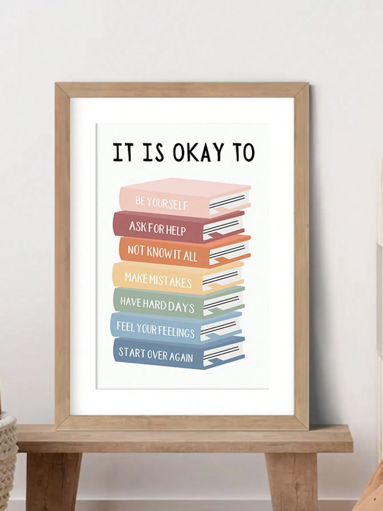 Boho It Is OK to Feel Books Educational Poster Wall Art Canvas Painting Print Picture Children Kids Room Classroom Decoration