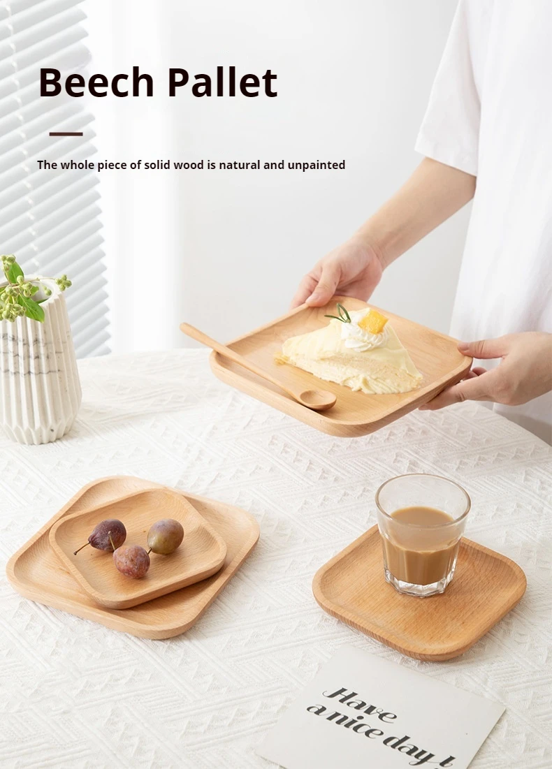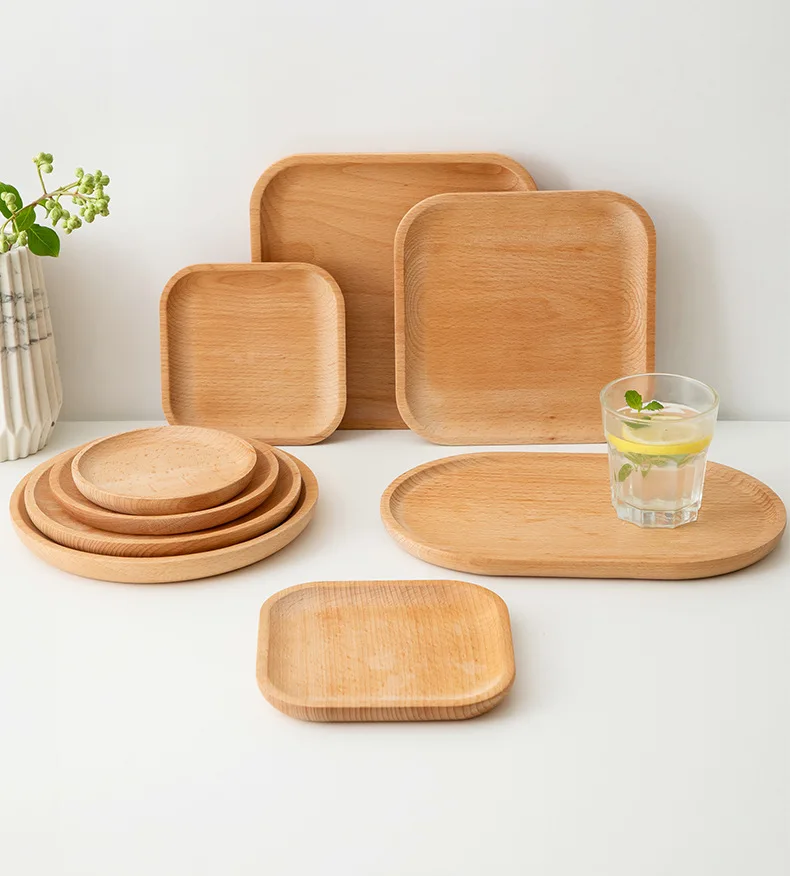 Wood Beech Plate Fruit household buffet plate Oval wooden plate trays decorative Candy RectangularDessert Dinner Plate Tableware
