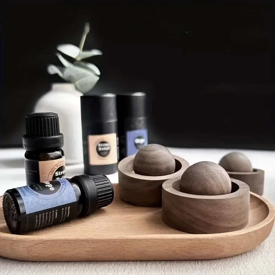 Wood Car Essential Oil Diffuser Wooden Aromatherapy Round Essential Oils Diffuser Set for Home Office Bedroom Car