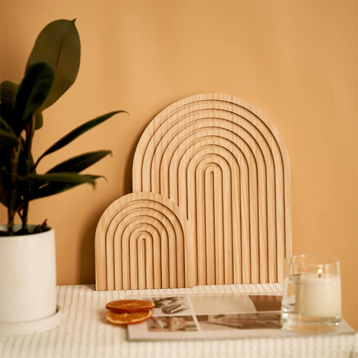Wooden Wave Arch Shaped Cutting Board Boho Style Decorative Wooden Cutting Board Home Decor for Kitchen Dining Room Living Room